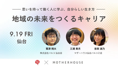 採用 【仙台】思いを持って働く人に学ぶ、自分らしい生き方ー地域の未来をつくるキャリアー株式会社パルコ仙台店 鷲津、マザーハウス仙台パルコ2店店長・スタッフ