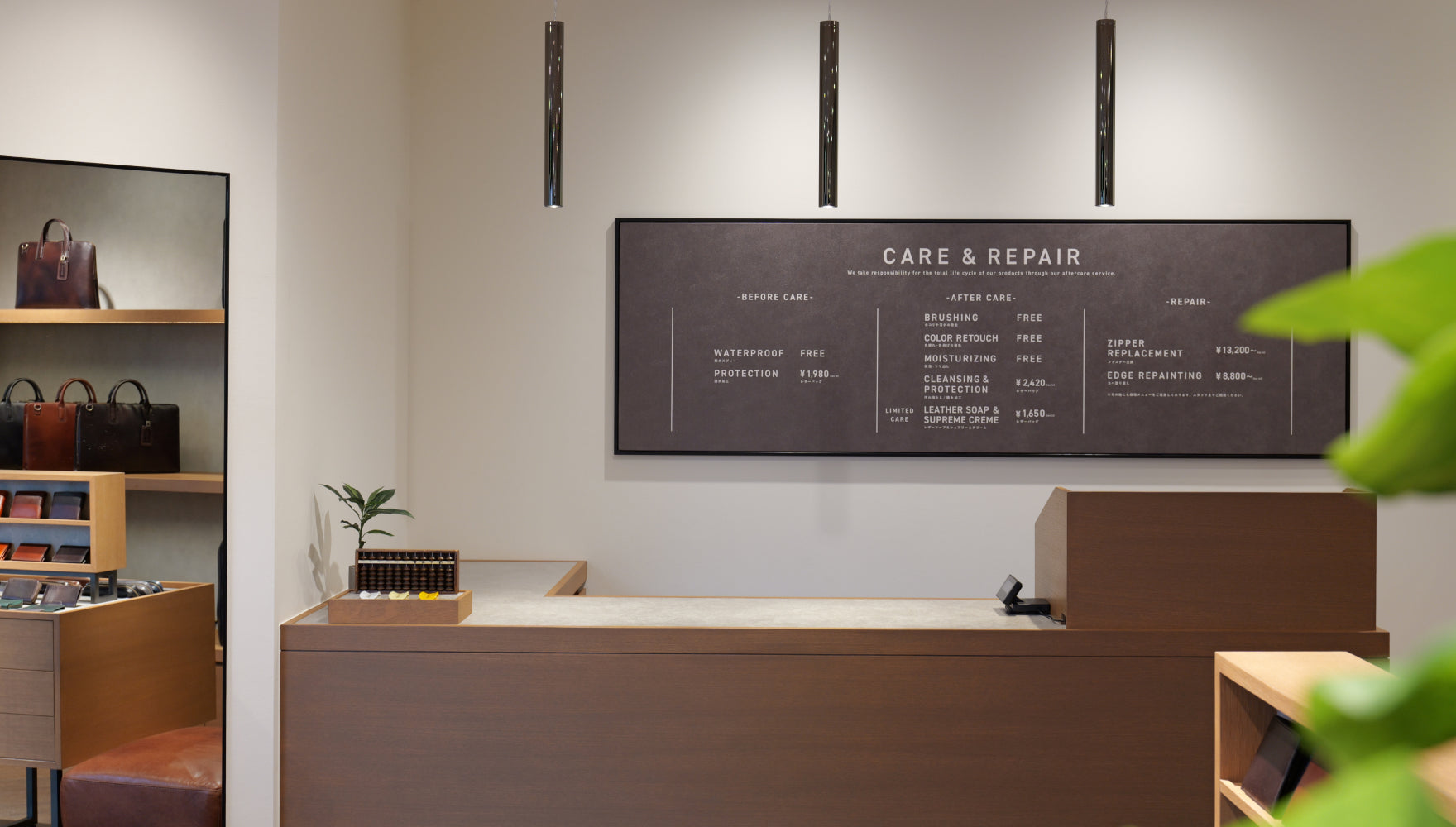 有料のレザーケアサービスやメンズ店限定のショッピングバッグなど、特別なサービスをご用意しています。