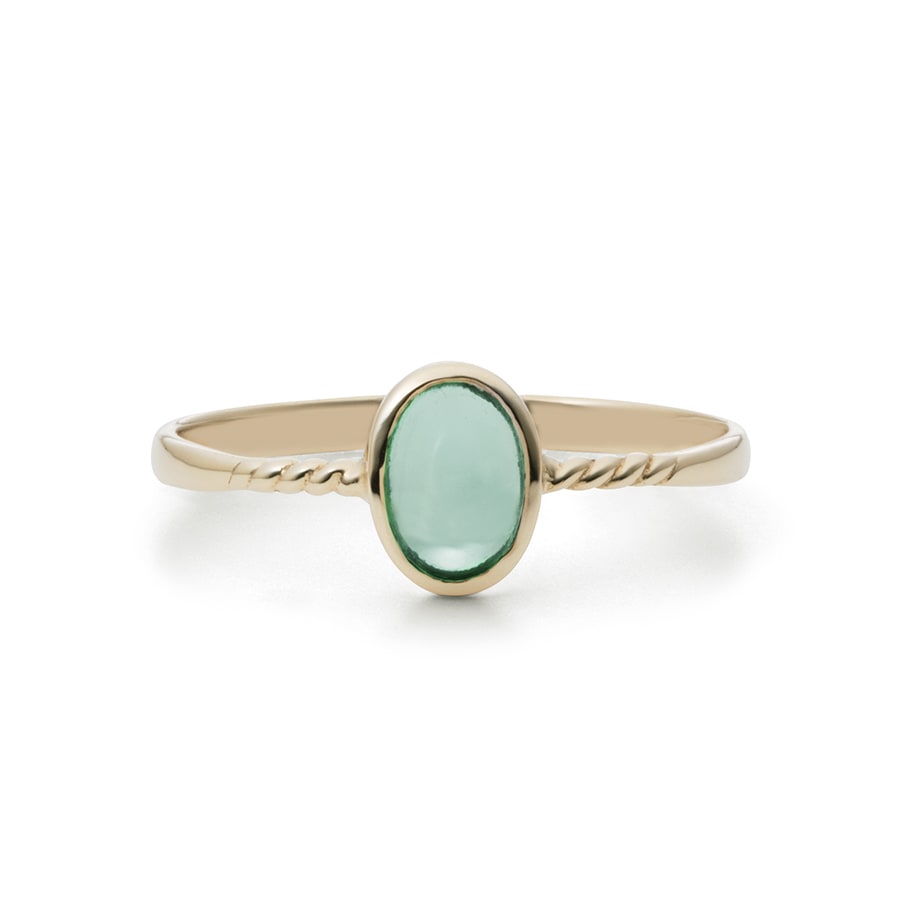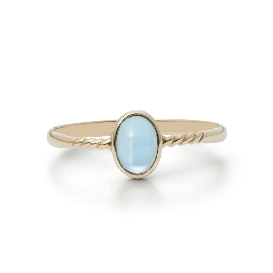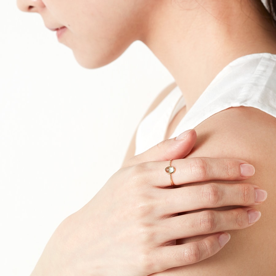 どこまでも広がる穏やかな海と水面を走るさざ波を表現した、"Sazanami"。天然石の周りに施した金糸の装飾が、指の縦ラインを強調し、全体的にすっきりとした印象に。大切な日に身に着けたり、ギフトにもおすすめのジュエリーです。