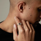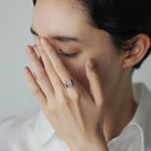 広大な海に描かれた、ひと筋の海路を表現したDay and Night (Kairo)。海路に見立てた斜めに流れるシルバーフレームが、2つの天然石の輝きを引き立てます。2色のストーンのコントラストが楽しめるスクエアフォルムのジュエリーです。