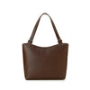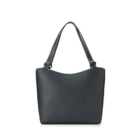 • 背面から見たところ。背面には、アイテムをすっと出し入れできるファスナーポケ ットを配置。ファスナー部分にレザーカバーを取り付けることで、金具の露出を抑えられ、バッグ全体のシンプルな雰囲気をまとめています。