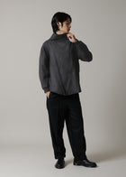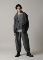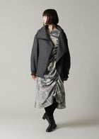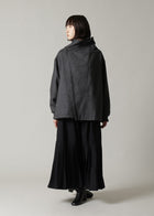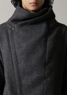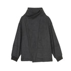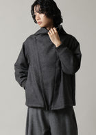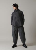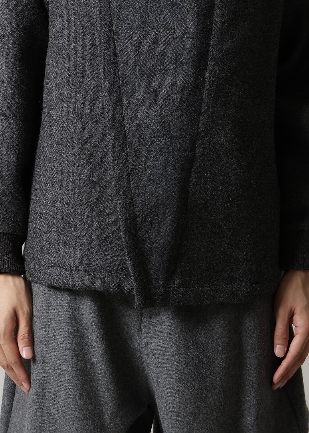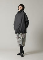 ゆったりとした着心地でありながら、トップスを着込んでもすっきりとしたシルエットに。 緩やかな角度で斜めにはしるフロント部分のジッパーは、閉め方次第で襟の形に変化をつけられるのも魅力的なポイント。ジッパーを全て閉めたハイネックの着用でモードな印象に。ジッパーをあけて襟を自然におろせば、布のドレープ感が生まれ、印象の違いを楽しめます。