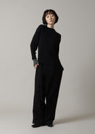 フリンジをあしらった一枚布をウエストに巻いたフロントラップデザインが特徴。動くたびに軽やかに揺れるベルトが、さりげないアクセントとして目をひきます。リラックス感のある着心地ながら、すっきりとしたシルエットと洗練されたディテールが、スタイリングをワンランクアップさせてくれる一着です。