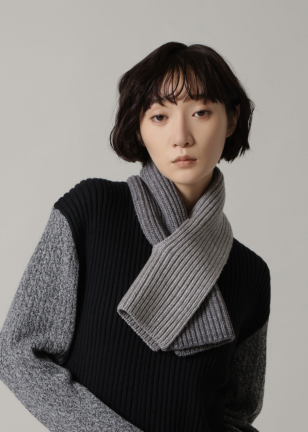 しっかりとした厚みがありながら、コンパクトな丈感ですっきりと巻いていただけます。片端のスリットに通すだけで手軽に着用できるのも魅力。ベーシックカラーはコーディネートに馴染みやすく、色物は着こなしの華やかなアクセントとしても活躍します。