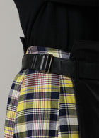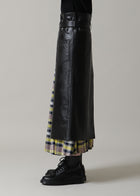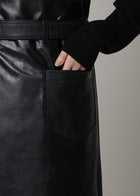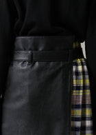 スタイリングにモードな変化を加える、ラップデザインのレザースカートです。