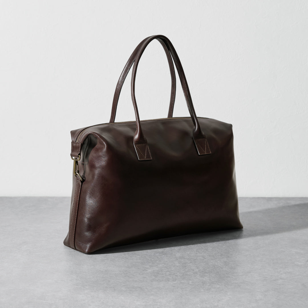 仕事の日も、旅や趣味を楽しむ休日も。一つ一つ異なる濃淡が魅力のアンティークレザーで仕立てたボストンバッグ