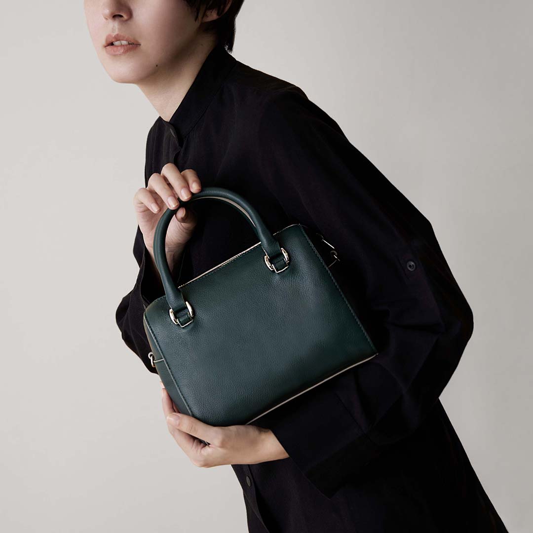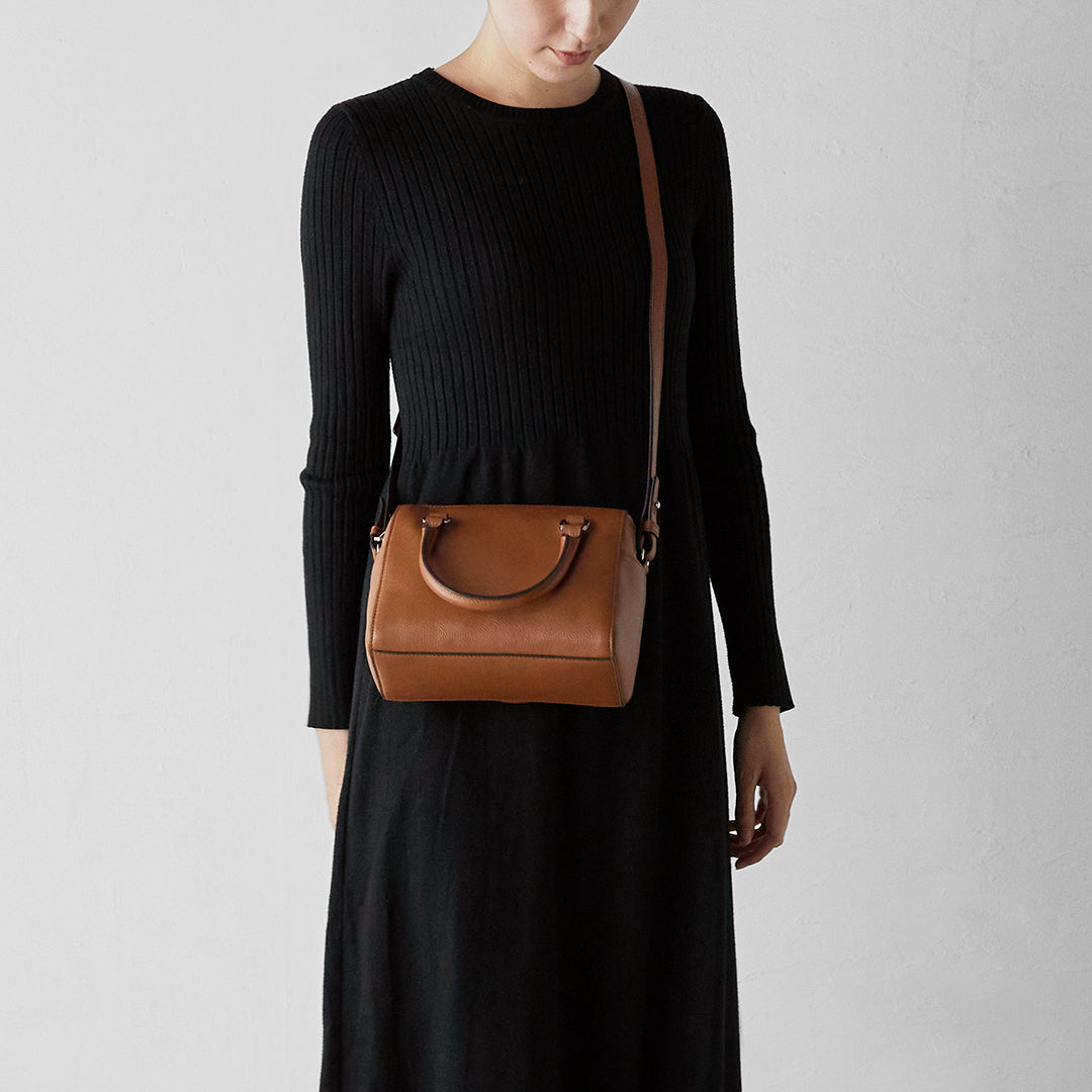 エッジに効いたカラーがアクセントの2way仕様のミニボストン。新モデルは、長財布やドリンクボトルを入れる収納力はそのままに、小ぶりなサイズにリニューアル。ふっくらとしたフォルムとベーシックなカラーは、綺麗めからカジュアルなスタイリングまで幅広くお楽しみいただけます。