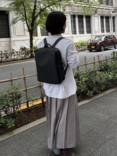 背負ったままアクセスできるポケットや掴みやすい引手など、直感的な使い心地を追求したバックパック。すっきりとしたスクエアフォルムで13インチPCも収納でき、撥水性に優れたポリウレタン素材は雨の日も安心でお手入れも簡単です。オンオフ問わずユニセックスで活躍します。