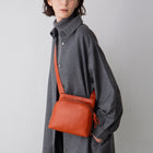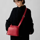 カーマイン着用(モデル身長:169cm)。 柔らかなレザーと太めのベルトが身体に沿い、軽やかな使い心地です。