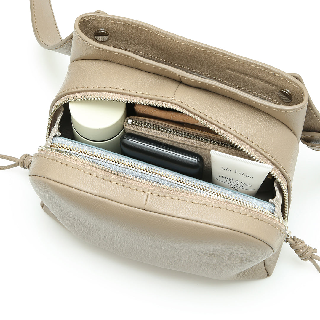 お洋服のポケットのように使えるスリットポケットを備えた、2層構造が魅力の「ソラ」。360°動くショルダーベルトで、ショルダーとウエストポーチの2wayで活躍します。ベルトレザーの薄型化で、より身体にしなやかにフィットする仕様にアップデート。Mサイズは、長財布が収まる実用的なサイズ感に刷新。ショルダーベルトも長くなり、お好みのフィット感に調整しやすくなりました。