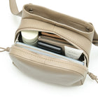 横幅は、旧型よりも一回り大きい20.5cmへと刷新。ファスナーが付いたメイン収納部は、長財布が入るようになり、実用的なサイズ感に。日常に寄り添いながら、スマートな使い心地を追求しました。
