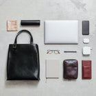 • すっきりとした縦フォルムでありながら、マチがしっかりキープされている為、パソコンをはじめ、ガジェットなどの細かなアイテムもたっぷり入ります。