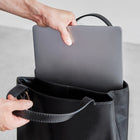 スリムな背胴側の収納には書類やPC、前胴側には細やかなアイテムと、荷物を分けて収納いただけます。ノートPCは15インチ程度のサイズまで収納いただけますが、13インチ程度であれば、高さに余裕が生まれるサイズ感です。