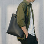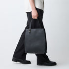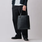 時間をかけてオイルとワックスを浸透させた、艶やかなレザーで仕立てた縦型トート。シンプルなデザインながら、広めのマチと2層構造の仕切りで効率的にアイテムの整理が可能。15インチまでのPCが収納可能で、大きめPCを持ち歩く方にもおすすめです。手持ちと肩掛けの2wayでオンオフ活躍する、ユニセックスなトートです。