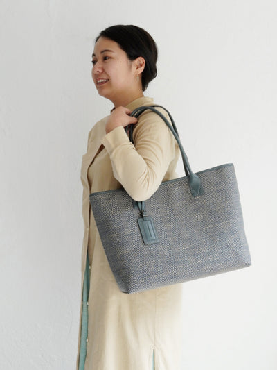 クラシカルなヘリンボーン模様が美しい、「さらり麻(あさ)」のサラリジュートシリーズに、軽さと実用性を兼ね備えたトートバッグが登場。荷物を入れすぎても重くなりすぎず、やさしく体にフィットします。オンオフ問わずユニセックスでお使いいただけます。