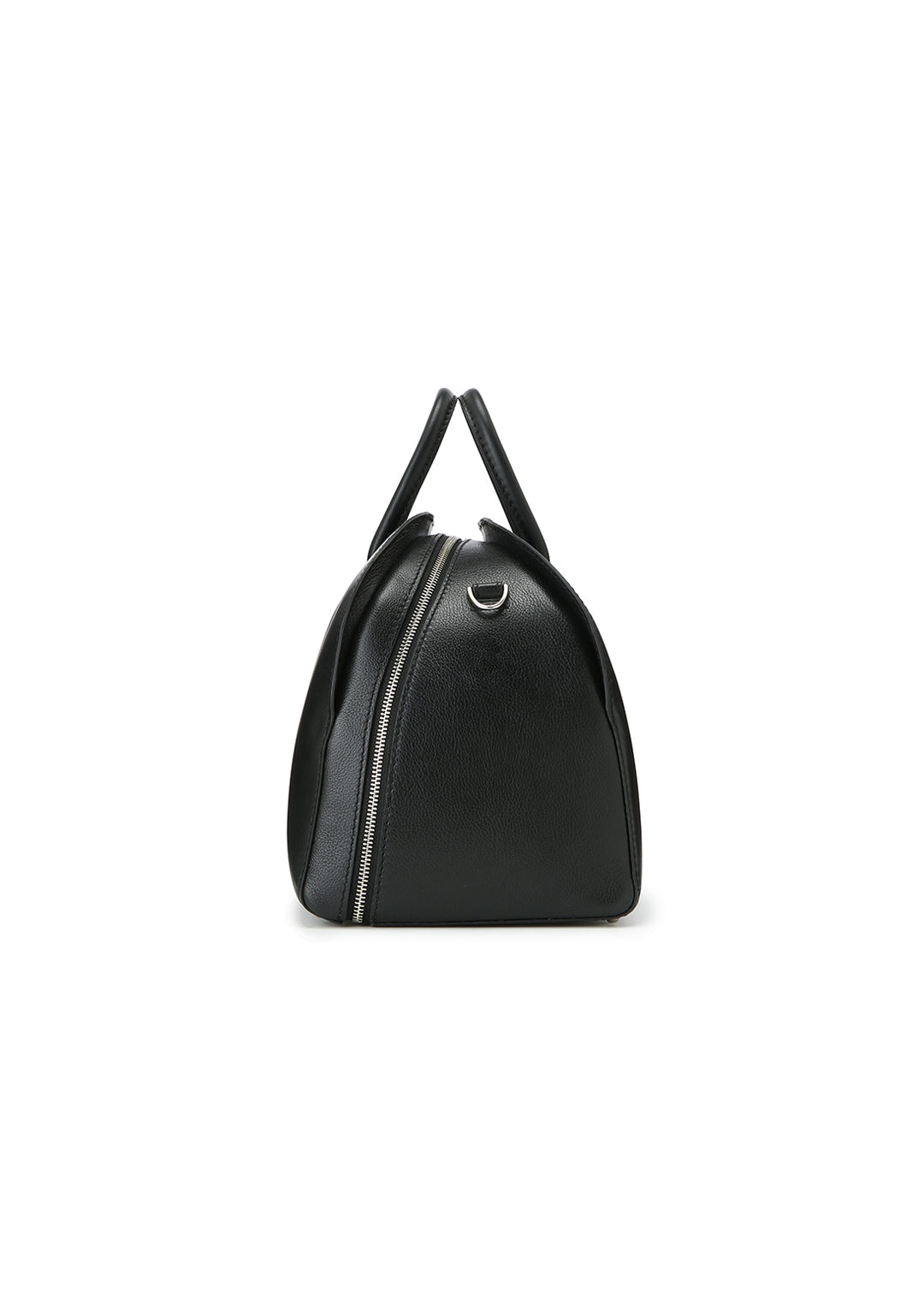 ハリのあるブラックレザーを使用したユニセックスのボストンバッグです。