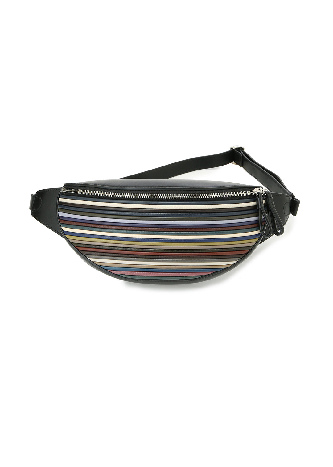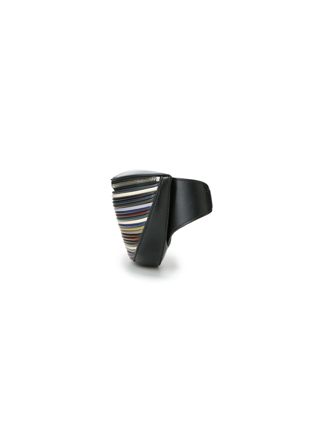紐を包むレザーには、その他のバッグの生産過程で生まれた端材を再活用。端材同士を組み合わせるからこその一期一会のユニークな配色が生まれ、色鮮やかなバッグとして蘇りました。