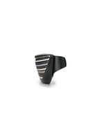 前胴の22本の紐は、長さの異なるレザーパーツで包み込み、すべてを繋ぎ合わせて仕立てています。紐を包むレザーは、生産過程で生まれた端材を再活用しており、一期一会のユニークな配色をお楽しみいただけます。※こちらのカラーは完売しております