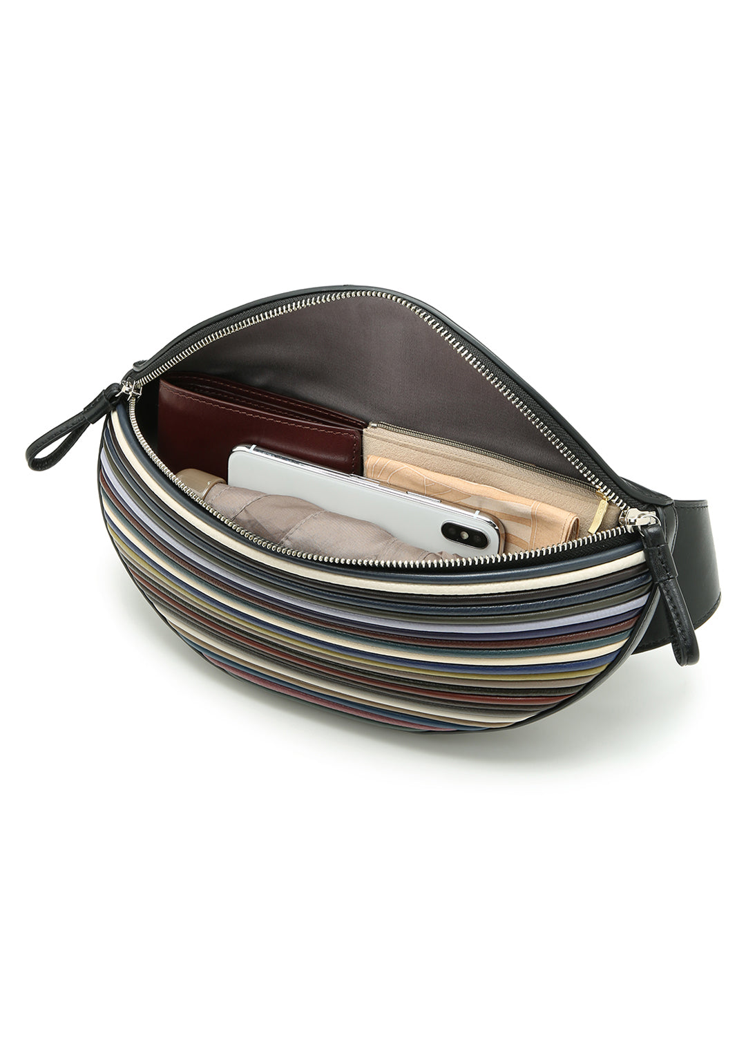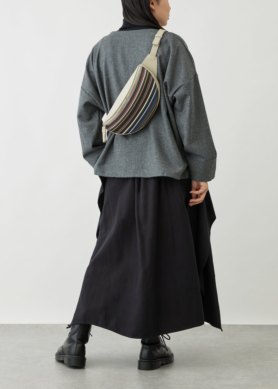 スマホや折り財布、ハンカチなどの最低限のお荷物を収納可能。コンパクトなサイズ感と身体に寄り添う流れるようなフラップも使いやすいポイントです。