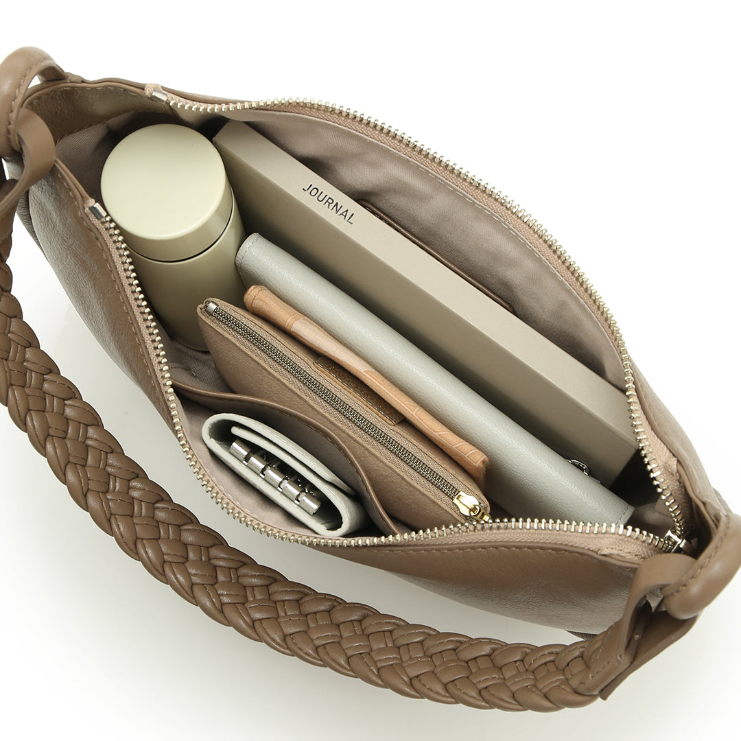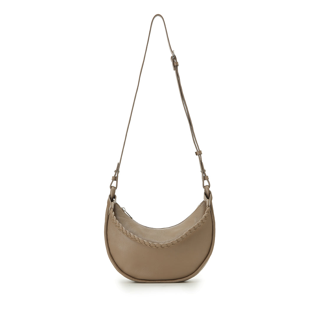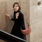 ふわりと浮かぶ月のように、やさしい曲線が日常にすっと馴染む。柔らかく軽い、ムーン型の2way ハンドバッグ