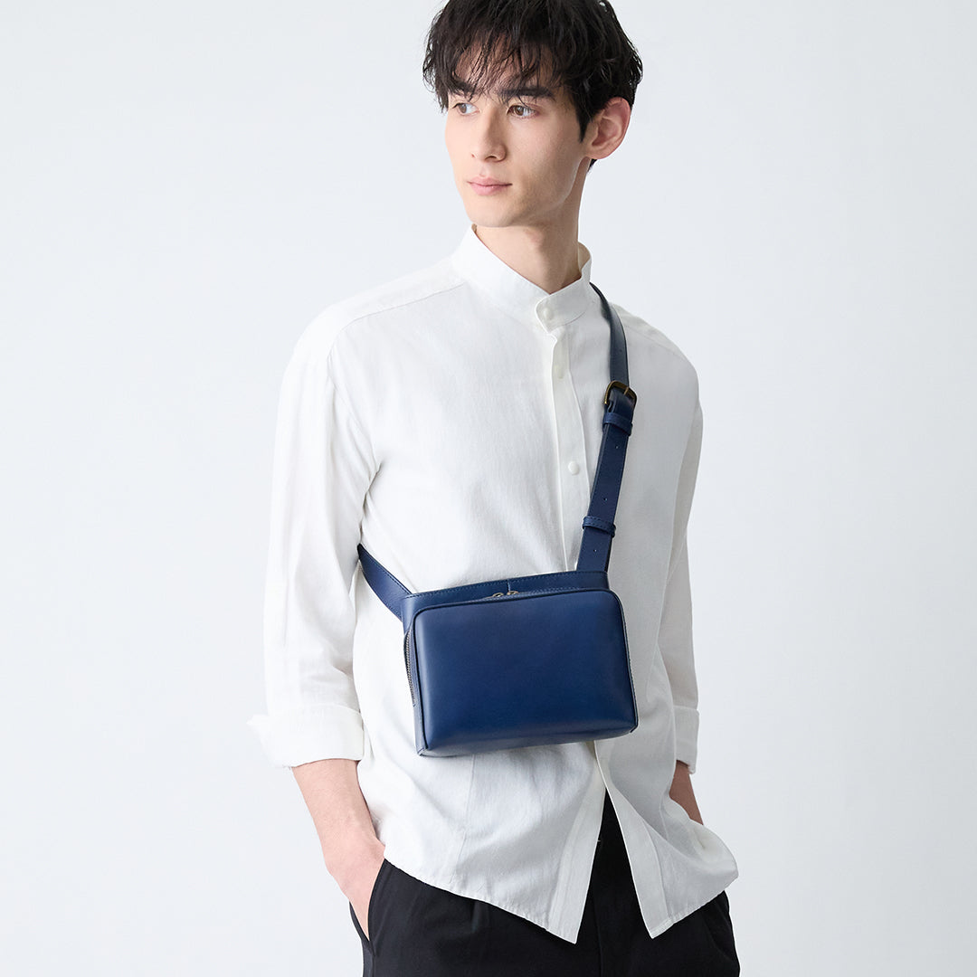 目を引く鮮やかさがありながら、レザーの濃淡が落ち着きを与えるアンティークネイビーは、日々のスタイリングの幅を鮮やかに広げてくれます。