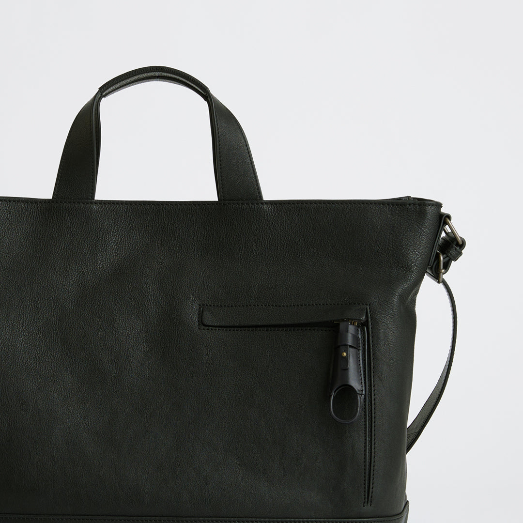 表情豊かなシボと経年変化を愉しめるオイルレザーで仕立てた、大容量ショルダーバッグ。一枚革を贅沢に使用したミニマルなボディは、フロントポケットをアクセントにした洗練された佇まいに。1泊程度の出張や旅行にも対応するサイズ感ながら、豊富な内ポケットでバッグの中身をスマートに整理。手持ちと斜めがけの2wayで活躍し、大人の装いに抜け感を添える日々の頼れる相棒です。