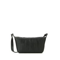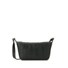 水面の揺らぎを映したレザーで仕立てた、舟形フォルムのショルダーバッグ。絞り加工で生まれるレザーの凹凸と染めが織りなす、奥行きのある濃淡と風合いが、さりげない個性をプラスします。コンパクトながらも長財布が収まり、細かなアイテムの出し入れがしやすいフロントポケットも装備され、日常使いしやすいバッグです。