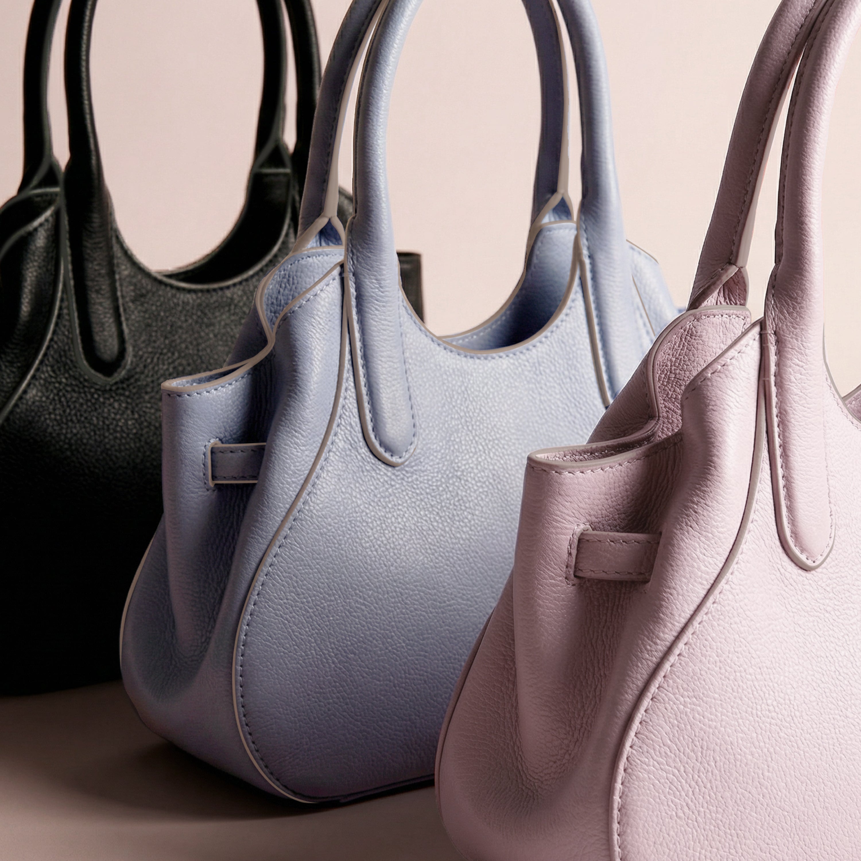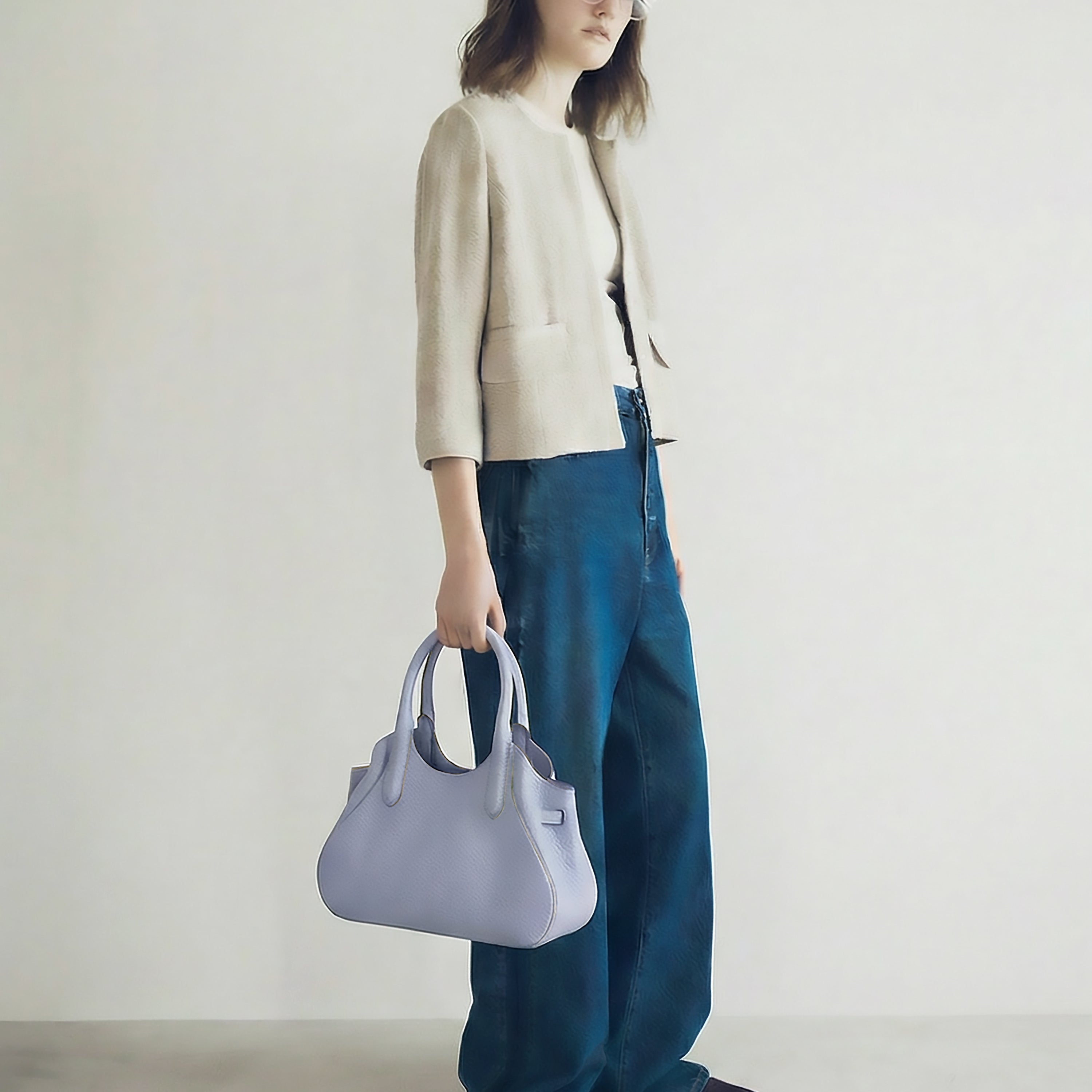 アイボリー、チャコールブラック、ミストピンク、ベージュ、ライトブルー(※)。春の景色に溶け込むような、爽やかで淡い色彩を中心とした5色をご用意しました。それぞれのレザーを美しく引き立てるのは、コントラストを効かせた配色の「コバ塗り」。何度も工程を重ねる、手間を惜しまない丁寧な手仕事が、凛とした佇まいを生み出します。