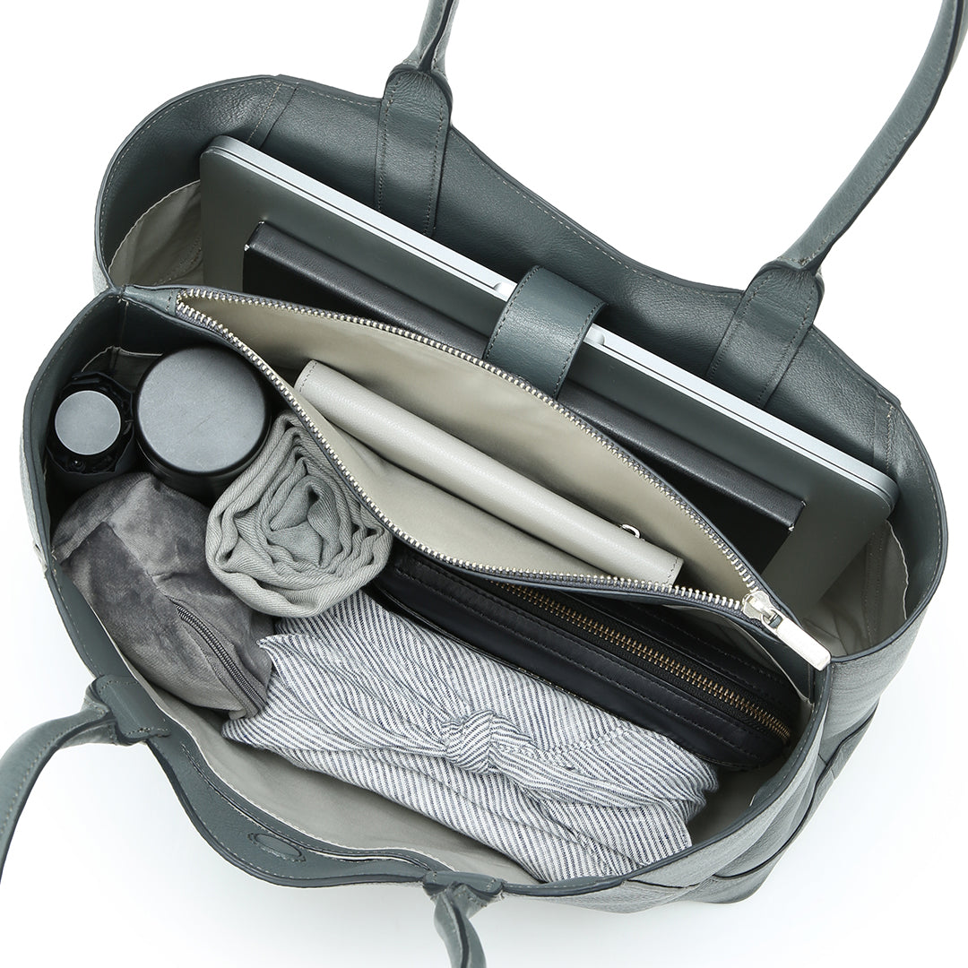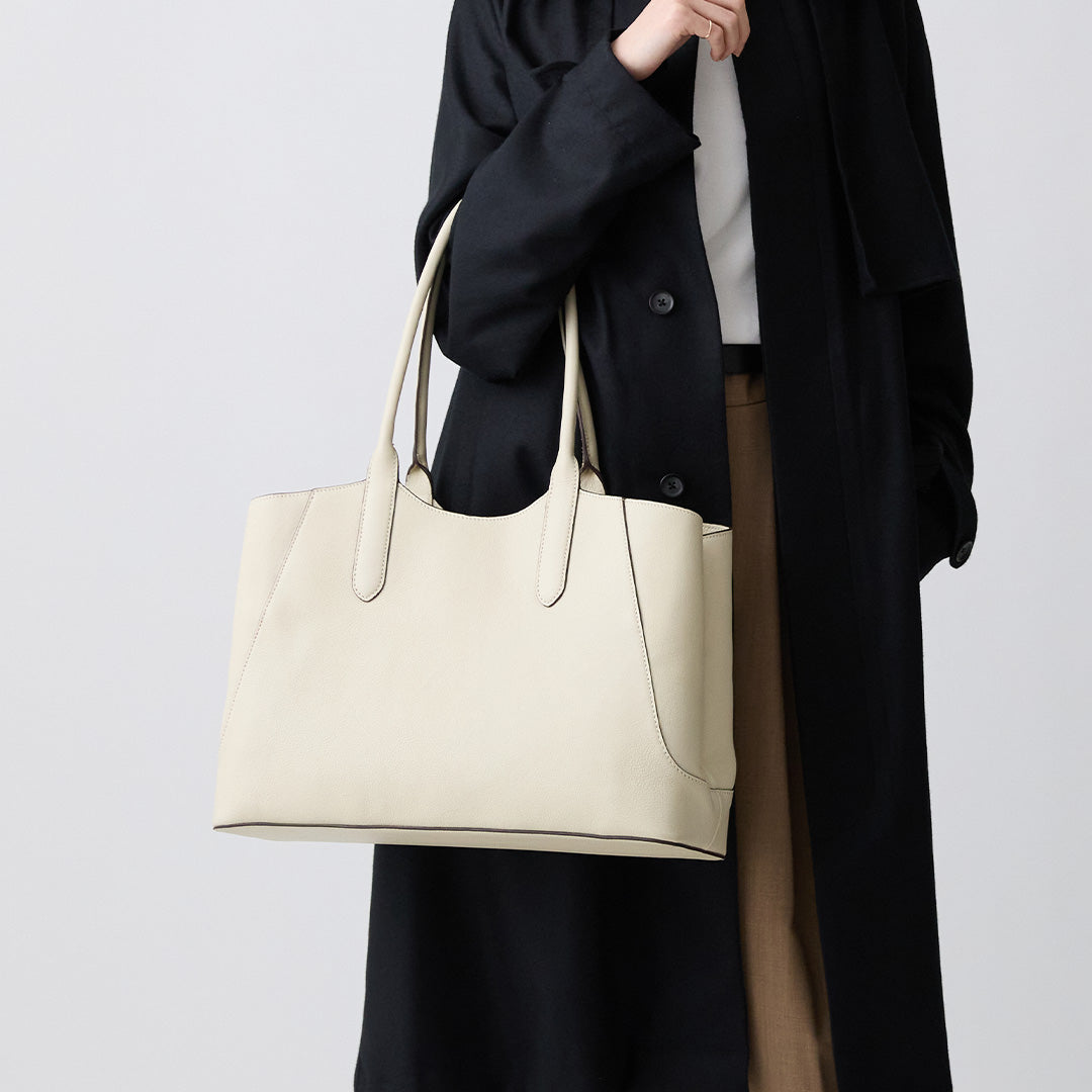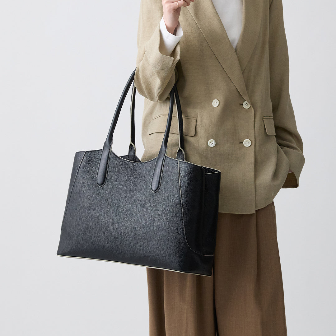 凛とした佇まいに、三層構造の自由な収納力を。心地よいしなやかさで、大人の気品をまとうトートバッグ