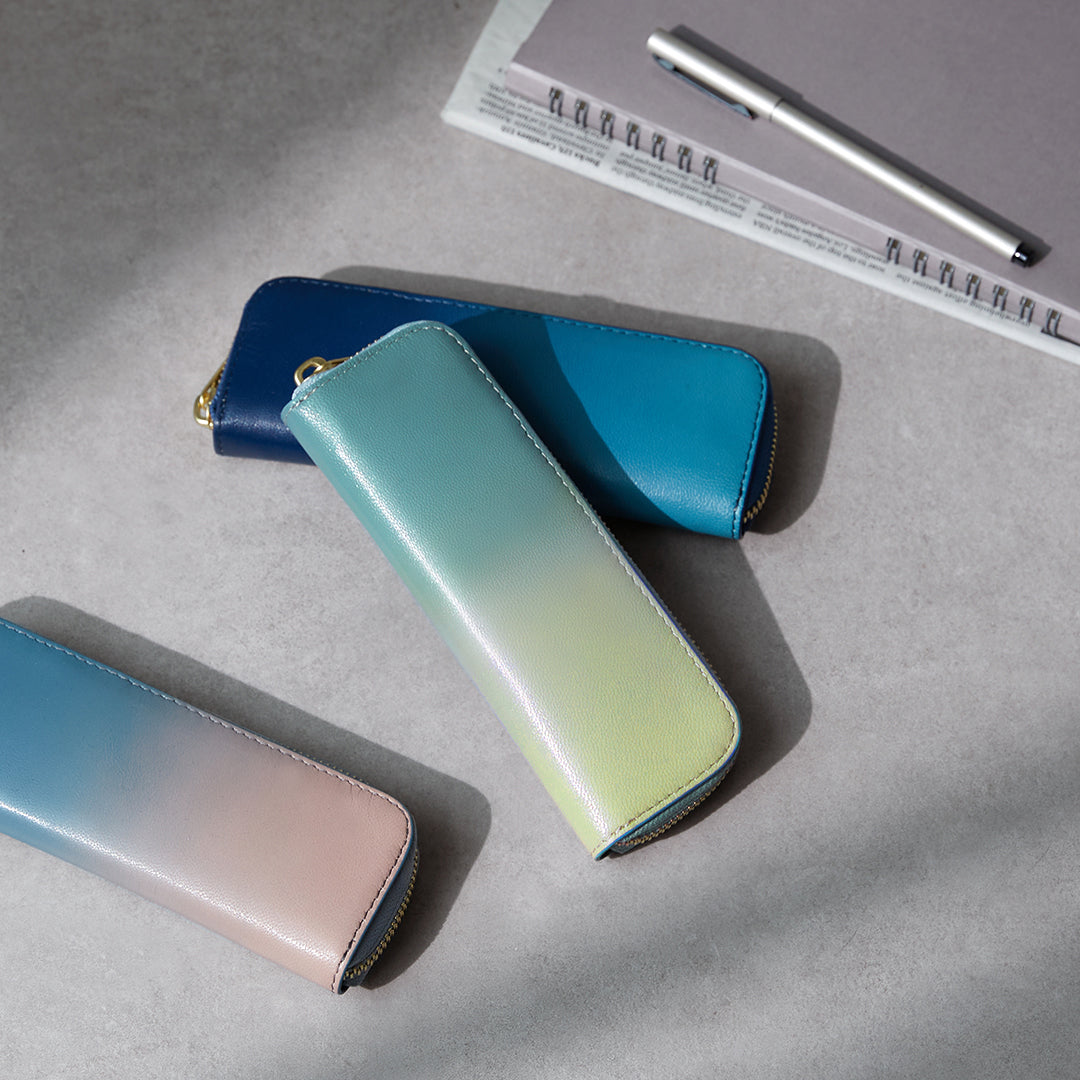 日本の四季を表現したイロドリシリーズ。多彩なグラデーションレザーが映えるディティールにこだわり、職人の手仕事で仕立てた、フラットタイプのペンケースです。イロドリ豊かなカラーバリエーションはギフトにもおすすめです。