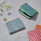 日本の四季を表現したグラデーションレザーを、一本一本丁寧に編み込んだ、L字型のコンパクトなお財布。キャッシュレス時代に適したミニマルさと、大きく開くマチ幅で使いやすさが魅力です。職人の手仕事が詰まった、美しく繊細な編み模様の一期一会の出会いをお楽しみいただけます。