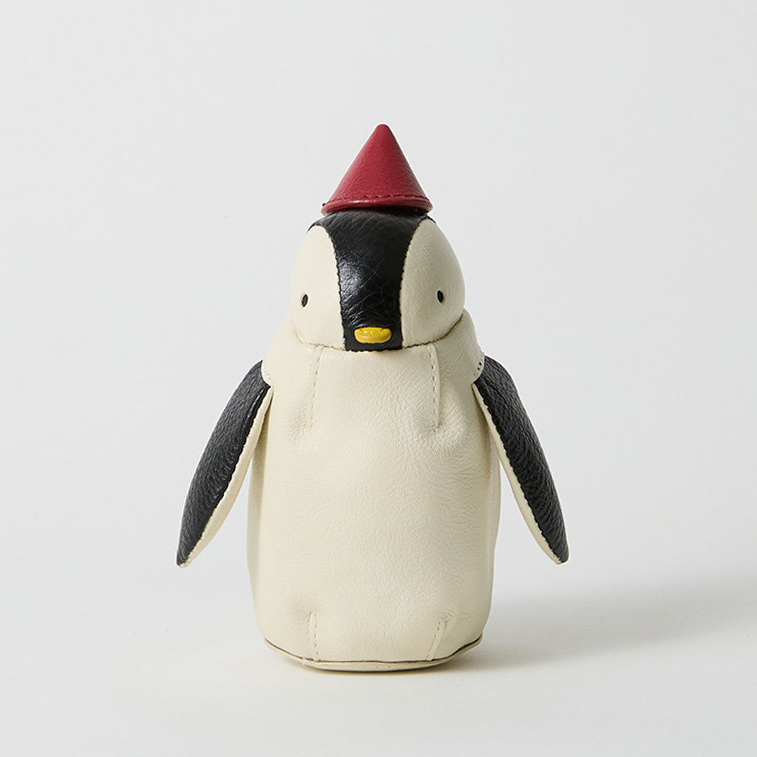 ふっくらとしたペンギンの愛らしさを最大限に引き出したミニポーチ。手仕事による一つひとつの表情の違いも魅力です。イヤホンや充電ケーブルなど、迷子になりがちな小物の収納にも程よいサイズ感。背面に付いたループにお手持ちのチェーンや紐を通せば、バッグチャームのようにしてペンギンとのお出かけをお楽しみいただけます。
