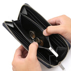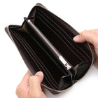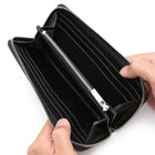 ファスナーを開けると中央に小銭入れがあり、2か所のお札入れと、カードポケットが左右5か所ずつあります。カードポケットとオープンポケットで、レシートや領収書なども分けて収納でき、大容量ながらしっかりと整理できる優れもの。