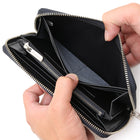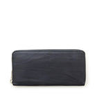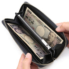 水面の揺らぎを映したレザーで仕立てた、ラウンド型の長財布。絞り加工によって生まれたレザーの凹凸に染めを施した、奥行きのある革の濃淡と風合いが、さりげない個性をプラスします。コの字に大きく開く構造で、中身が見やすく、必要なものをスムーズに取り出せます。使いやすいベーシックな色展開で、ギフトにもおすすめです。