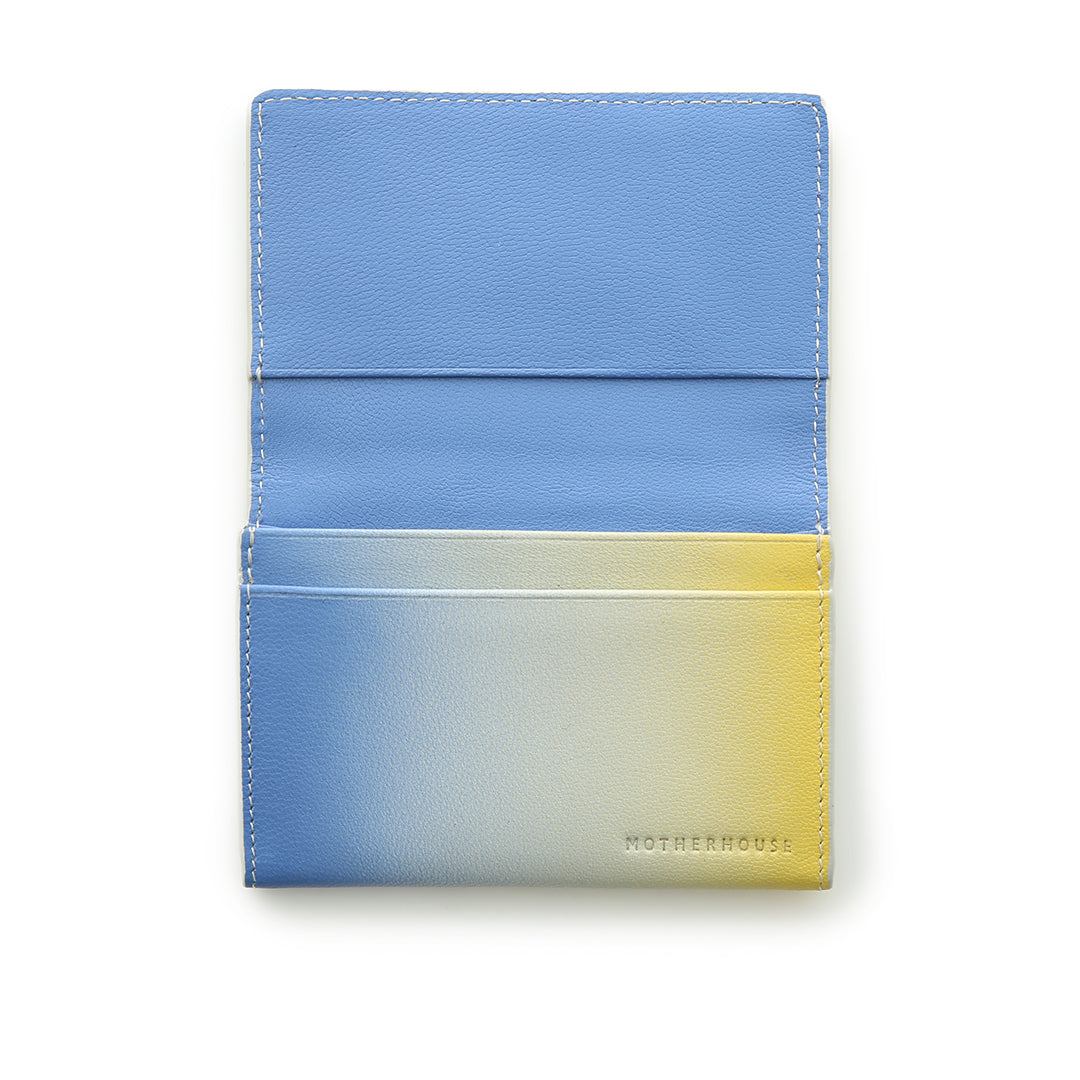 クリアな3色グラデーションが響き合う個性豊かな色合い。朝日が空を染める様子を繊細な職人技でレザーに落とし込みました。手仕事ならではのふっくらとしたフォルムも魅力の一つ。新しい季節をイメージする晴れやかな気分になるカードケースです。