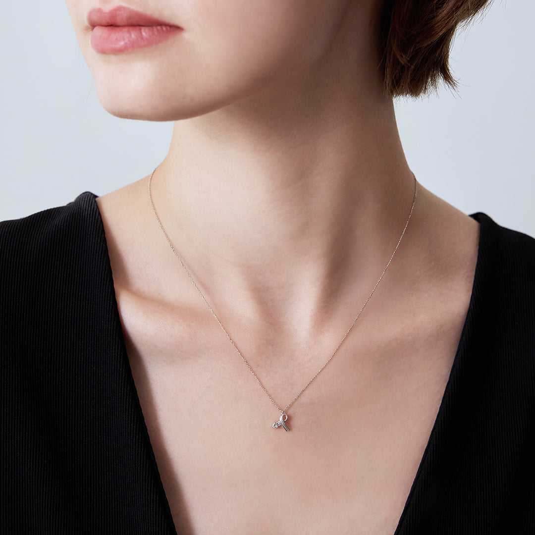 Keep Walkingのモチーフにダイアモンドがあしらわれたシルバーネックレス。
