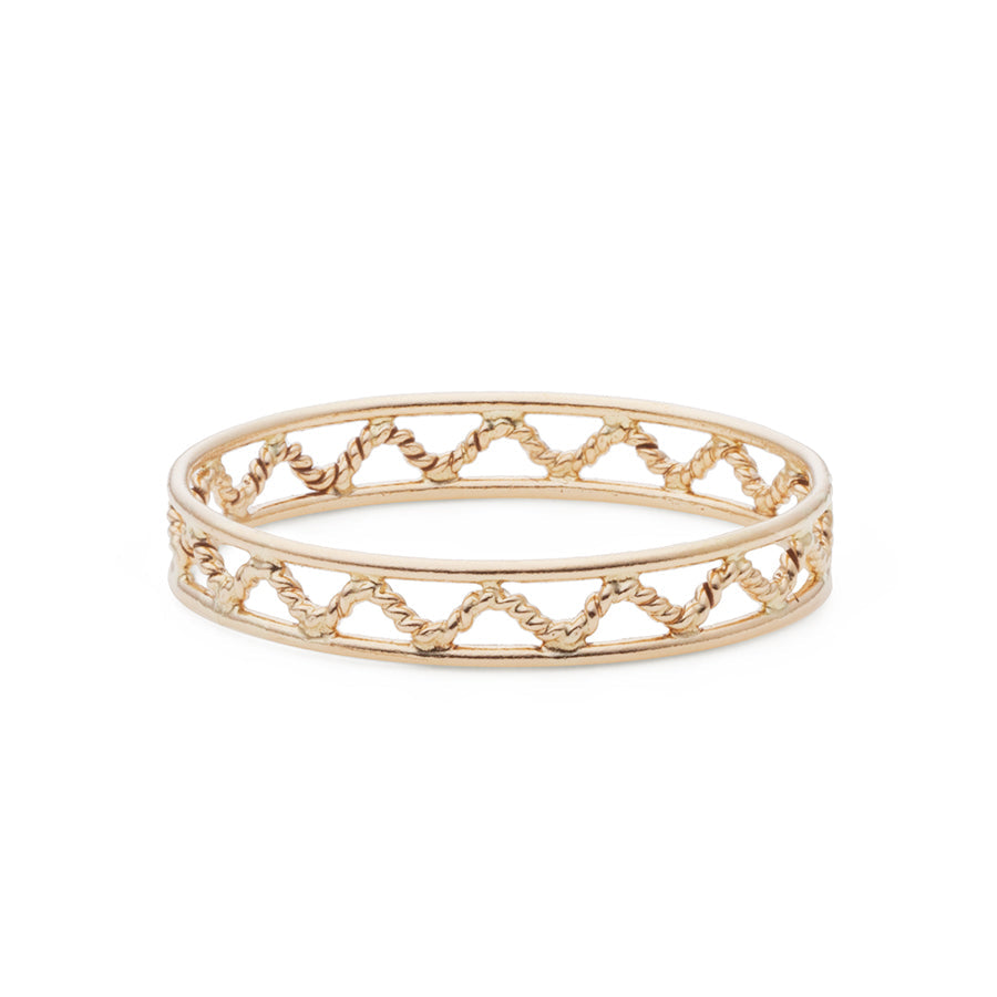 職人の繊細な手仕事で、金線細工のクラシカルな模様をあしらった、"小路"。つけ心地も軽く、金糸が織りなすやわらかな輝きが、お手元を華やかに。シンプルに身に着けたり、重ね付けも楽しめるピンキーリングです。