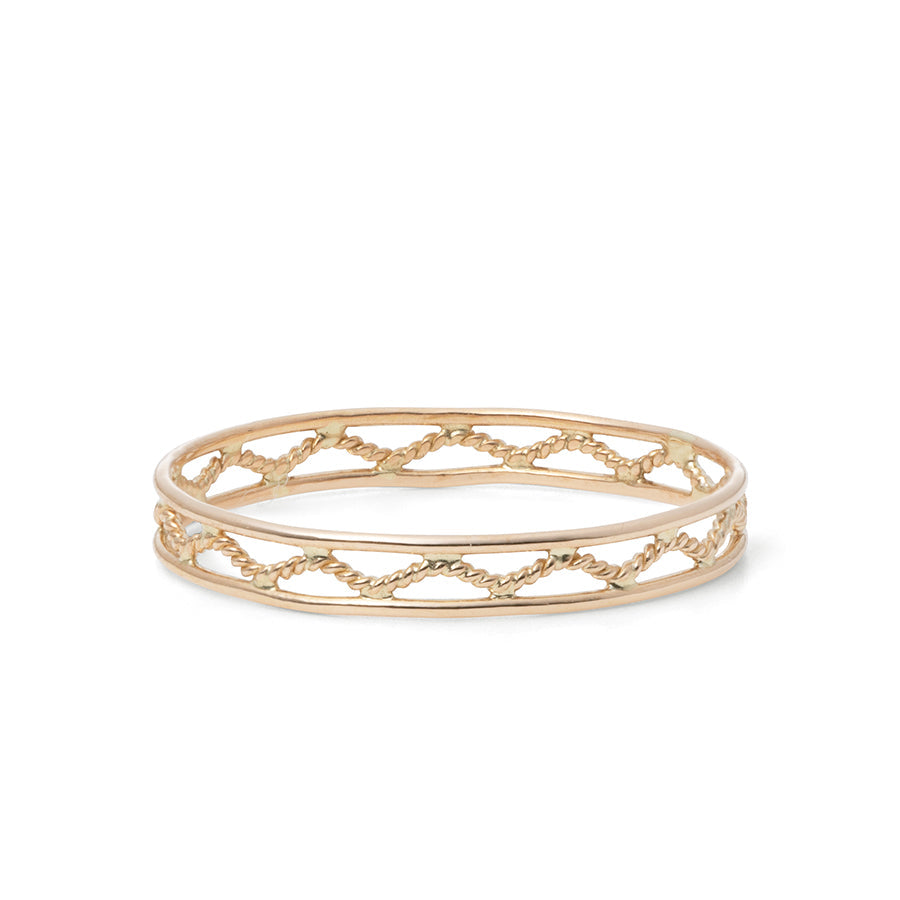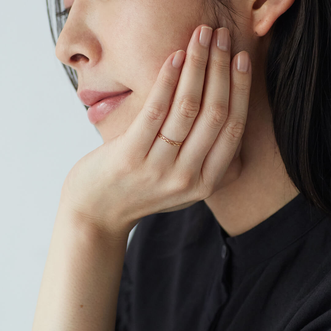職人の繊細な手仕事で、金線細工のクラシカルな模様をあしらった、"小路"。つけ心地も軽く、金糸が織りなすやわらかな輝きが、お手元を華やかに。シンプルに身に着けたり、重ね付けも楽しめるリングです。
