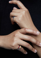 向き合うようにリングで重ね付けをしても良い、同じ向きでつけてみてもまたガラリと印象が変わります。凹みの距離はわずか1ミリもないんですが、生きている感覚を宿すぞっていう執着心が潜んでいることを伝えたい!って思いました。