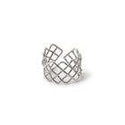 ワイドで大振りなシルエットでありながら、細かな格子デザインがシックで洗練された印象を演出。 シルバーのやわらかな輝きは素肌にも馴染みやすく、カジュアルにも綺麗めにも、幅広いシーンにあわせて着用いただけます。