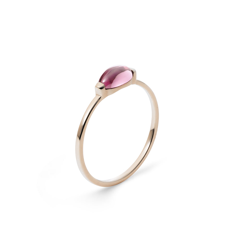 陽の光を浴びて輝く、ひとひらの花びらを表現したHitoeのピンキーリング。天然石を挟み留めすることで、天然石の艶やかな表情と柔らかな輝きが引き立つ愛らしいデザインに。身に着けるとチャンスを引き寄せるとされるピンキーリングに、情熱の石と言われるローズガーネットが煌めきます。日々に寄り添い、そっと気持ちを高めてくれるジュエリーです。