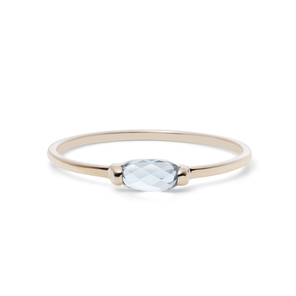 シンプルなデザインと淡く肌なじみのいいお色味のため、重ね付けもおすすめです。(画像で着用しているペリドットはHitoeリングです。) 涼やかで上品なアクアマリンと健康的でフレッシュなペリドットはいつものコーディネートにさりげない華やかさをプラスします。 その日の気分に合わせて遊び心を付け足しながら重ね付けをお楽しみください。