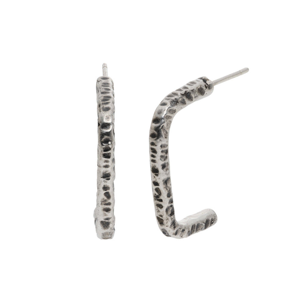 いぶし加工を施した、ニュアンスのあるフォルムが目を引くピアスです。