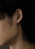 シルバー着用。程よいボリュームに、抜け感のあるC型のフォルムが、耳元に存在感と個性をそえるデザイン。