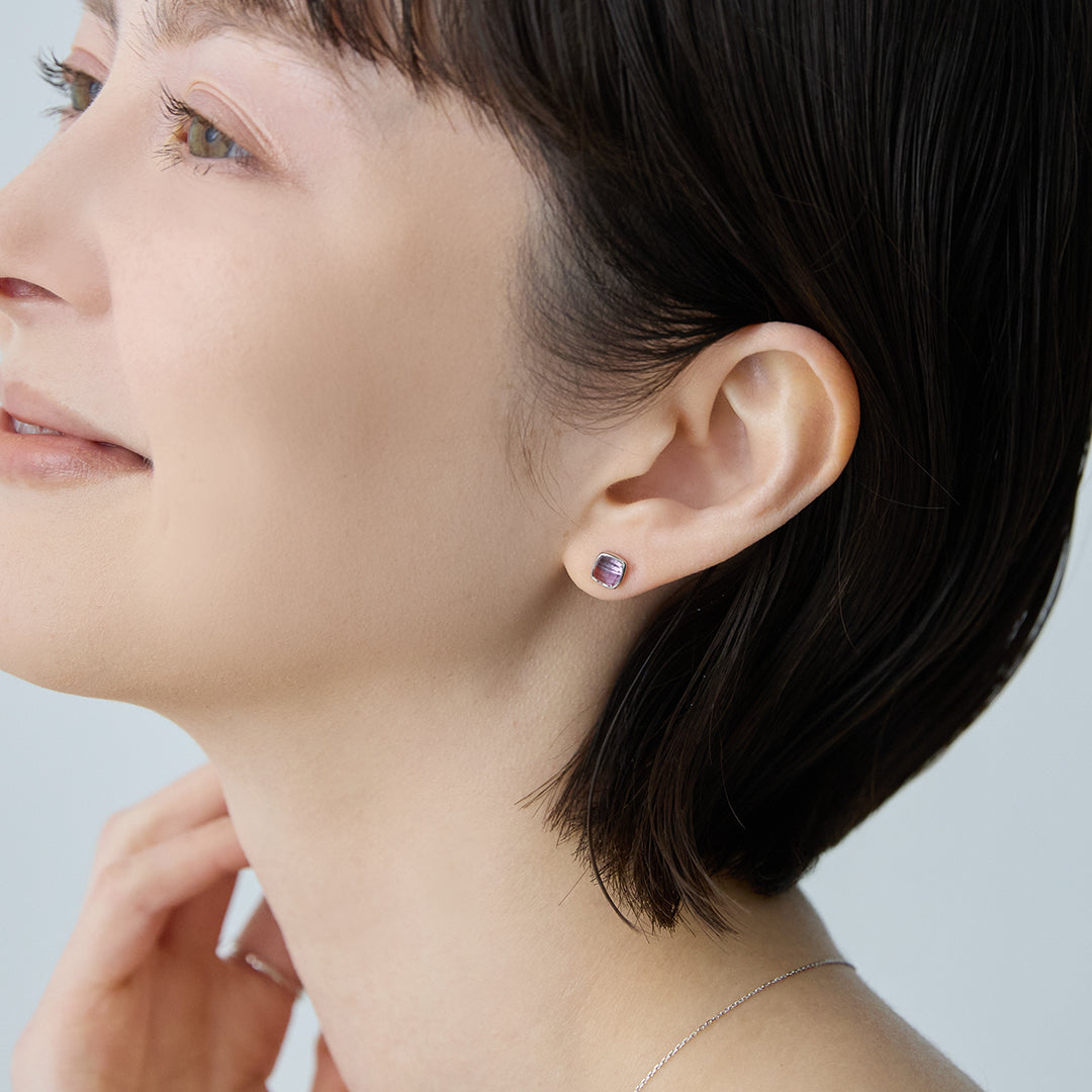 澄んだ空ときらめく海をイメージしたSoraumi。この度、夕刻の柔らかな光が空へと溶け込んでいくような、新色の「アメジスト」が加わりました。 角度が変わるたびに変化する様子がまるで空と海を閉じ込めたよう。 ぷっくり丸みのある天然石にファセットカットが施された存在感のあるジュエリーに仕立てました。 光をとらえて繊細に煌めく優しいカラーが、お顔回りに特別な彩りを添るピアスです。