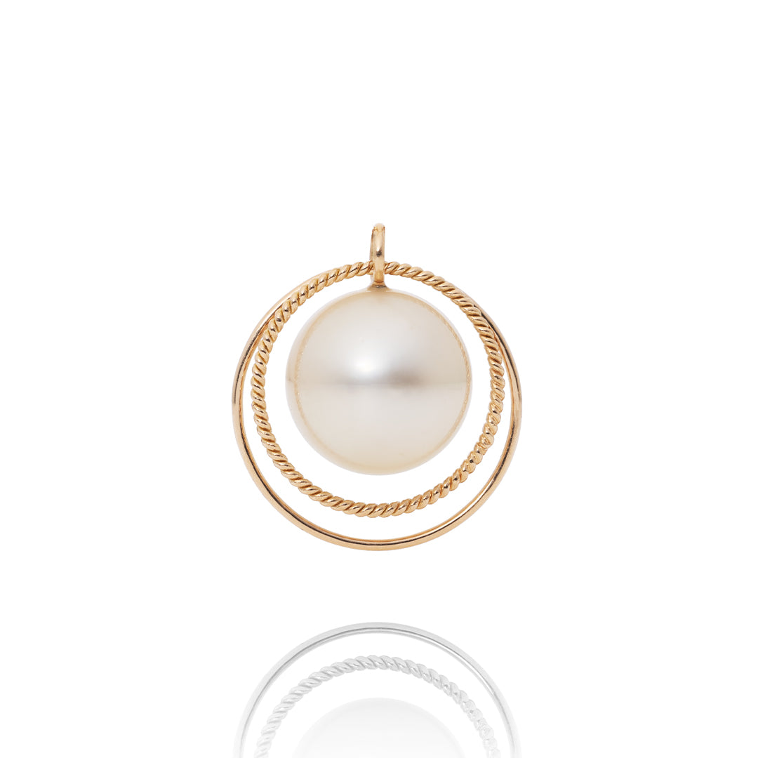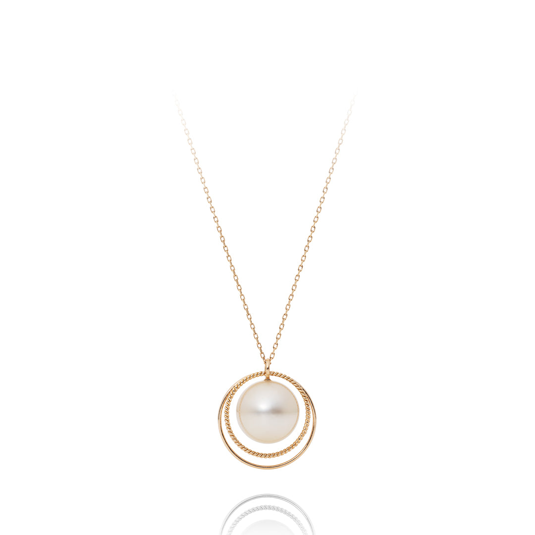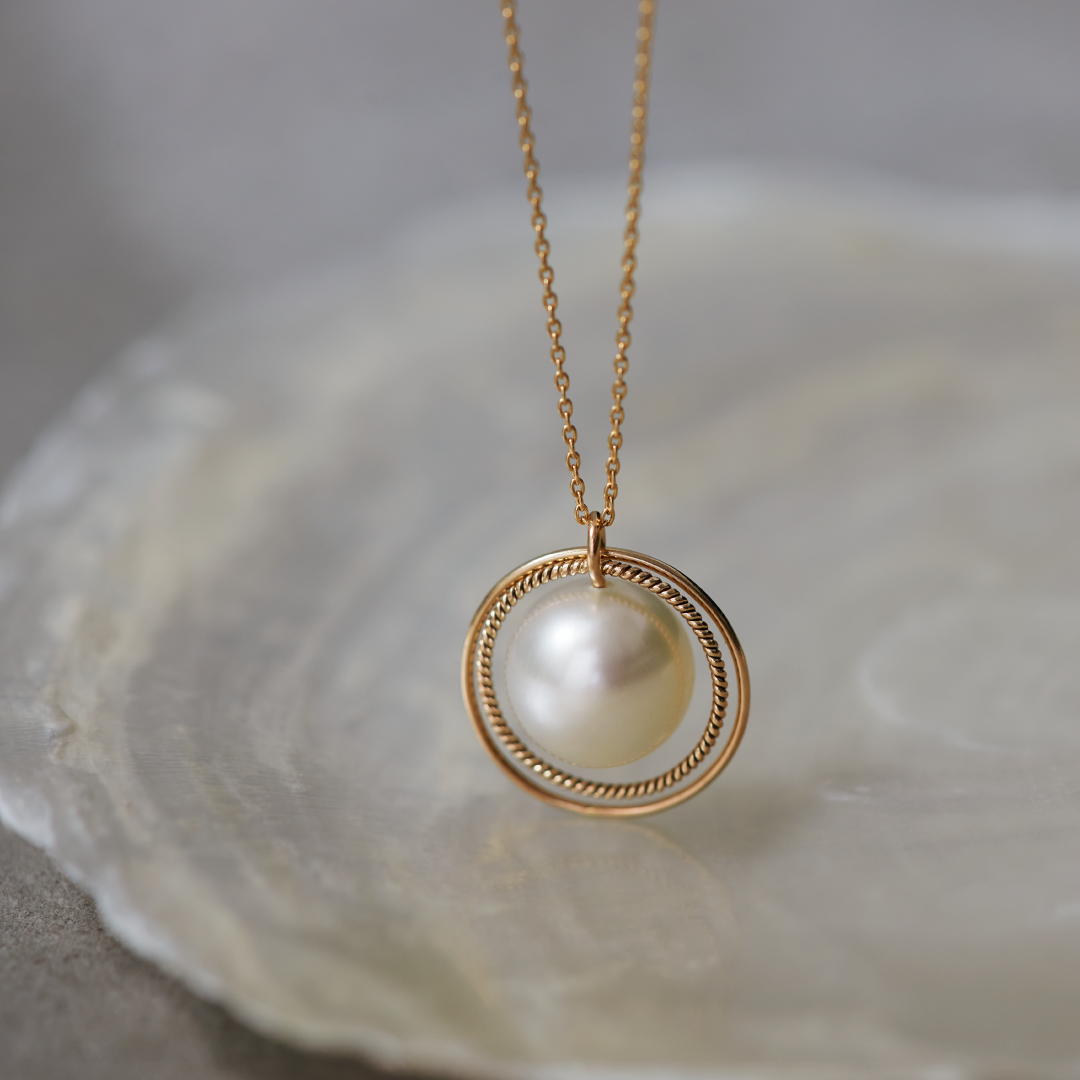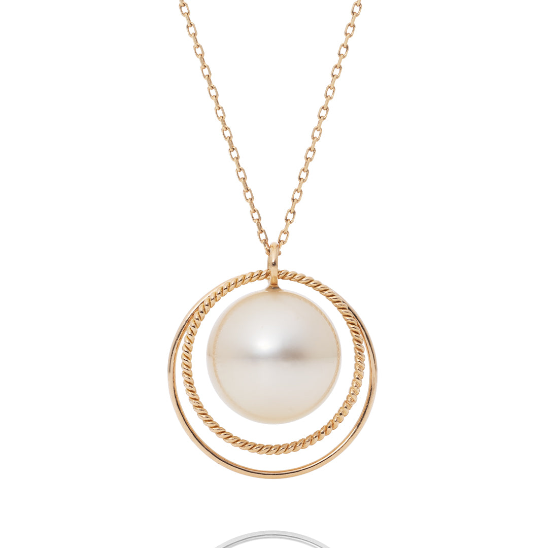 宇宙をイメージしたデザインの"軌道"が、ひとまわり大きくなって新登場。インドネシア・ロンボク島の豊かな海で、4年以上の歳月をかけて育まれた南洋パールは、重厚で奥行きのある、シルクやサテンのようなしっとりとした質感が特徴です。宇宙に浮かぶ惑星と衛星の軌道を表現しており、ツイストした金細工と艶やかな金糸が織りなす輪の輝きが、個性豊かな大粒のパールの表情を際立たせます。パールの柔らかな表情が、そっと気分を盛り上げてくれるジュエリーです。