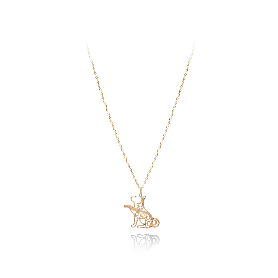 子犬が覚えたての「おて」をしている姿をフィリグリーで表現したネックレス。ぴんと立った耳やくるっと巻いたしっぽの可愛らしさに、思わず笑みが溢れます。柔らかに煌めく金線細工で仕立てた、コーディネートのワンポイントとしてお楽しみいただける愛らしいジュエリーです。