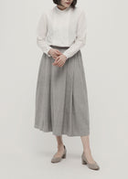 オックスフォードのしなやかな風合いをお楽しみいただけるタックスカートです。適度な広がりと長めの丈感、オックスフォードの素材感が上品な印象を与えてくれます。ウエストゴム仕様のため、身体にやさしくフィットして快適な穿き心地です。同素材のOxford Khadi Tailored Short Jacketとのセットアップもおすすめです。