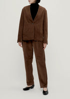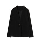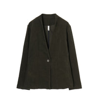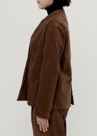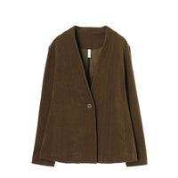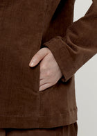 コーデュロイで仕立てたシンプルなノーカラージャケットです。シャツと合わせてきっちりとした印象にすることも、ニットやTシャツにさらっと羽織りラフに着こなすことも。程よい丈感でパンツはもちろん、スカートやショート丈のキュロットなど、幅広いスタイリングにお使いいただけます。肩幅が広めでメンズライクなコーディネイトにも活躍します。同素材のコーデュロイ ストレート パンツとのセットアップもおすすめです。