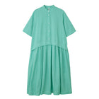 150dt カディ スタンド カラー プリーツ ワンピース